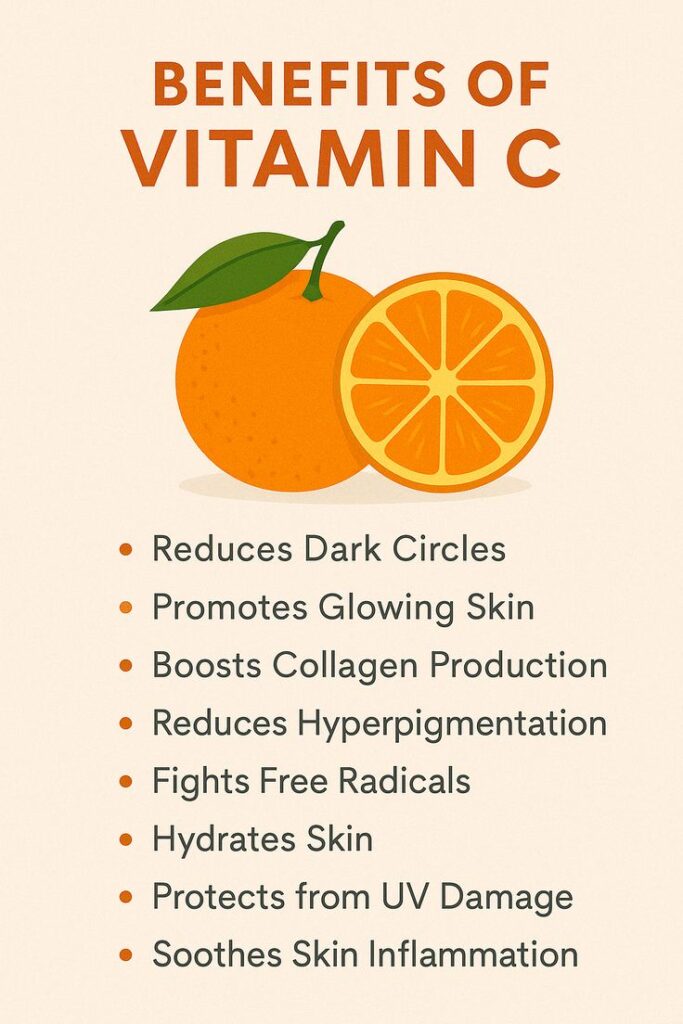 🍊 6. Vitamin C – The Immunity and Brightness Booster